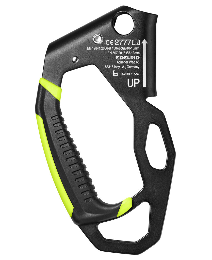 Ergonomically shaped hand ascender for a comfortable ascent on the rope. The curved design increases comfort and reduces friction in the system. A large eyelet allows several carabiners to be attached; a smaller eyelet slightly higher is ideal for setting up a directional anchor. Besides, the secondary hand can comfortably grasp the HAND CRUISER at the top during ascent.