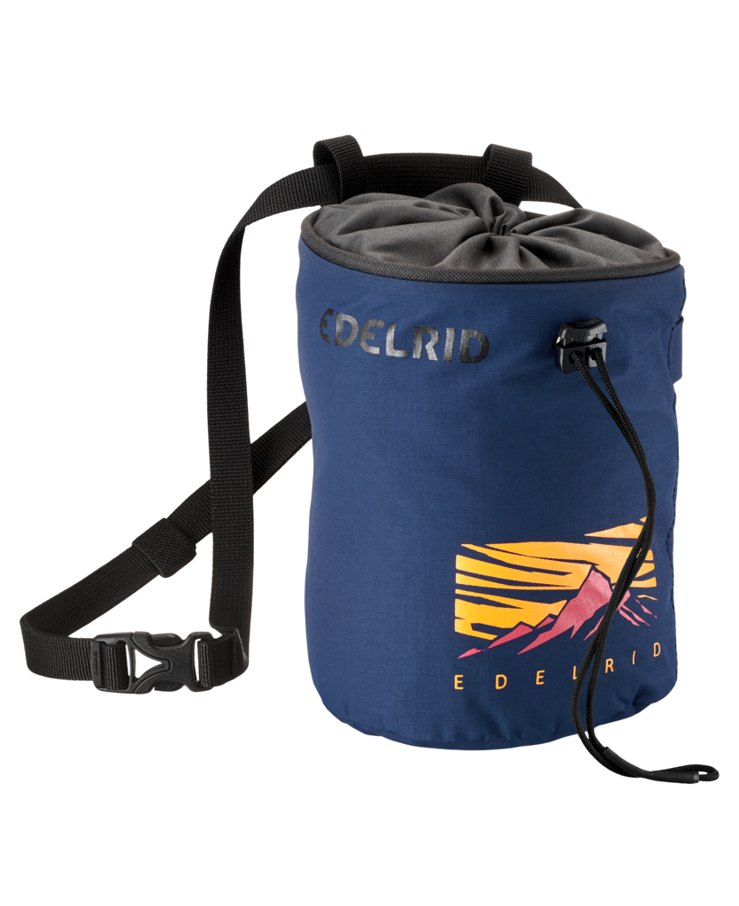 Stylish, fleece-lined chalk bag with a drawcord and two brush holders.